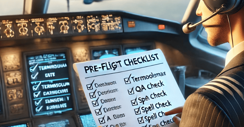 No es casualidad que las profesiones más exigentes del mundo confíen en sistemas de verificación precisos. Y si en 1935 un simple listado de pasos salvó a la industria aeronáutica de caer en picado, ¿qué no podrá hacer por nosotros una buena checklist de traducción?